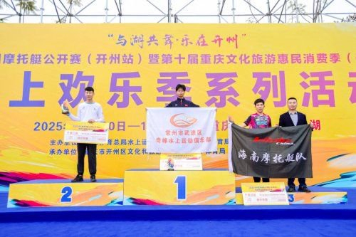 海南NPRO和万宁NPRO战队在本次比赛中表现亮眼,多次登上领奖台。作为本次赛事的“明星选手”,陈杉更是凭借丰富的大赛经验与稳定发挥,斩获坐式水上摩托限制级RL1竞速赛和耐力赛两项冠军,展现了国内摩托艇顶尖水准。武汉体院战队同样表现不俗,在立式项目中包揽J1、JO级冠军,彰显了专业体育院校的竞技实力;常州奇峰俱乐部选手李恙则跨项目作战,斩获新人组冠军与J1级亚军,成为赛事中的“双料赢家”。