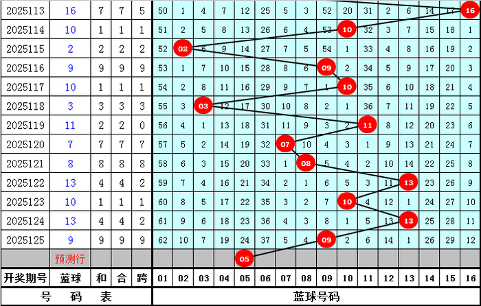 五码蓝球参考:02 05 08 11 14