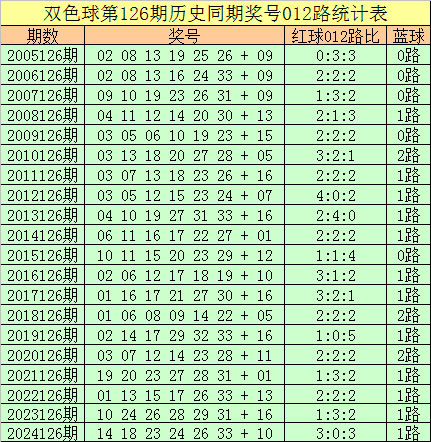 福彩双色球第2025126期历史同期王守礼012路奖号遗漏分析:
